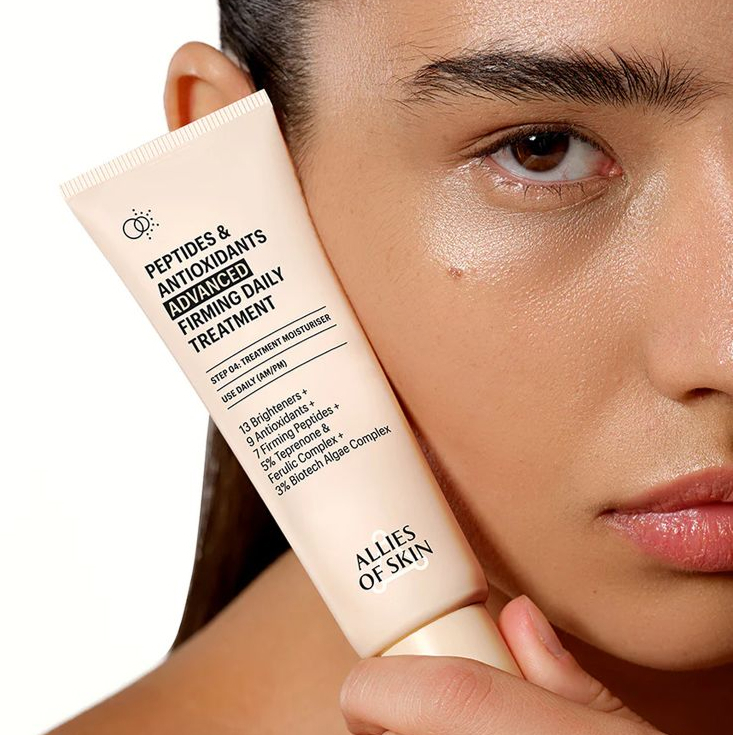 - Релаксирующие (ботулоподобные) пептиды работают с мимической активностью. Они помогают уменьшить передачу нервного импульса к мышцам, благодаря чему снижается выраженность мимических морщин. Иногда их называют мягкой альтернативой ботулотоксину (хотя эффект, конечно, не сопоставим по силе). Среди распространенных – Acetyl Hexapeptide-3 и Acetyl Hexapeptide-8. Они делают кожу визуально более гладкой и расслабленной. Ботулиноподобные пептиды часто сочетают вместе с сигнальными: такое комбо в составе укрепляющего крема Peptides & Antioxidants Advanced Firming Daily Treatment от Allies of Skin позволяет уменьшить видимость морщин, сделать кожу более гладкой, упругой и сияющей.