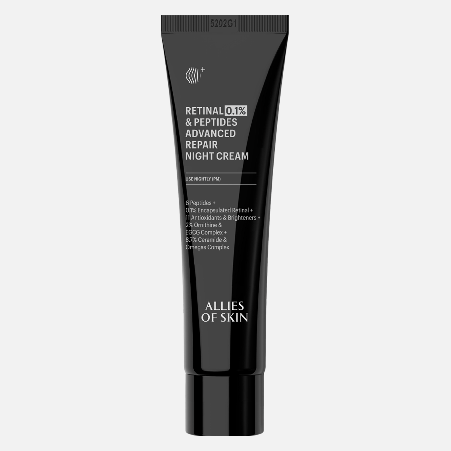 Aqua (Water), Glycerin, Argania Spinosa Kernel Oil, Caprylic/Capric Triglyceride, Polysorbate 60, Sorbitan Isostearate, Punica Granatum Seed Oil, Methylsilanol Hydroxyproline Aspartate, Cyclodextrin, Phytosteryl Macadamiate, Sodium Polyacrylate, Propanediol, Sodium Stearoyl Glutamate, Leuconostoc/Radish Root Ferment Filtrate, Rubus Chamaemorus Seed Oil, Hydrolyzed Jojoba Esters, Beta-Glucan, Ceramide NP, Centella Asiatica Extract, Madecassoside, Asiaticoside, Epigallocatechin Gallate, Camellia Sinensis Leaf Extract, Ubiquinone, Lecithin, Ornithine, Bisabolol, Retinal (Retinaldehyde), Helianthus Annuus Seed Oil, Glutathione, Arginine, Tocopherol, Phospholipids, Acetyl Hexapeptide-8, Glycolipids, Palmitoyl Tripeptide-1, Palmitoyl Tetrapeptide-7, Palmitoyl Tripeptide-5, Palmitoyl Tripeptide-38, Lonicera Japonica Flower Extract, Lonicera Caprifolium Flower Extract, Panthenol, Sodium Acrylates Copolymer, Xanthan Gum, Hydrogenated Polyisobutene, 1,2-Hexanediol, Caprylyl Glycol, Potassium Sorbate, Polyglyceryl-10 Stearate, Sodium Gluconate, Pentylene Glycol, Disodium Phosphate, Hydroxypropyl Cyclodextrin, Sodium Phosphate, Sodium Hydroxide, Citric Acid, Butylene Glycol, Carbomer, Polysorbate 20, Tropolone, Levulinic Acid, Phenoxyethanol, p-Anisic Acid, Salicylic Acid.