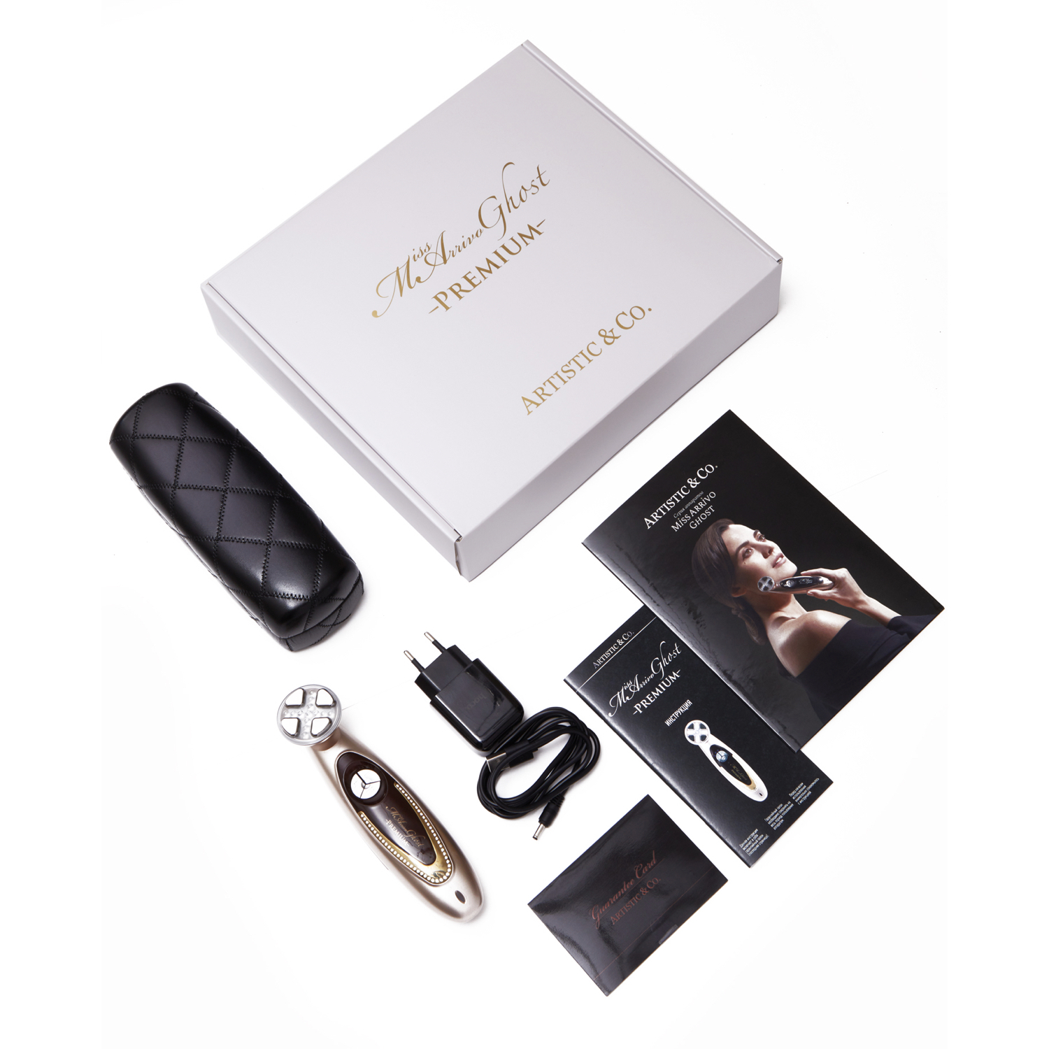 Miss Arrivo Ghost Premium – премиальный Японский косметологический аппарат для домашнего применения. В данную модель встроен аккумулятор, полного заряда которого хватает на 10-14 процедур, что делает Мисс самой эргономичной моделью, представленной производителем. Небольшая рабочая поверхность (3,5 см) дает возможность комфортно прорабатывать зону нижнего подвижного века, зону носогубной складки и губы.
