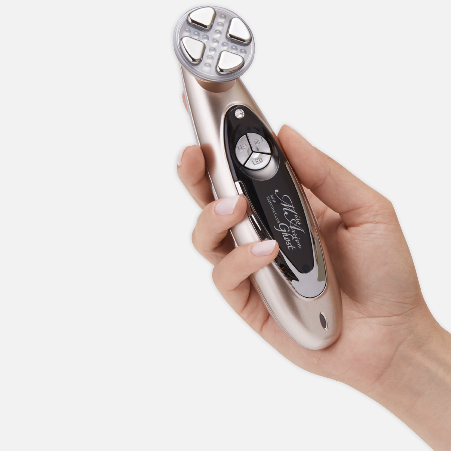 Miss Arrivo Ghost – премиальный Японский косметологический аппарат для домашнего применения. В данную модель встроен аккумулятор, полного заряда которого хватает на 10-14 процедур, что делает Мисс самой эргономичной моделью, представленной производителем. Небольшая рабочая поверхность (3,5 см) дает возможность комфортно прорабатывать зону нижнего подвижного века, зону носогубной складки и губы.